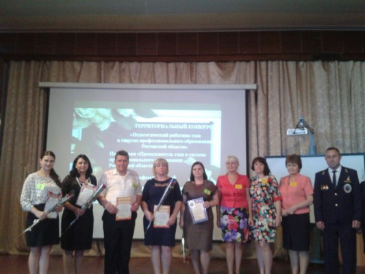 В мае 2016 года прошел территориальный конкурс «Преподаватель года в системе профессионального образования Ростовской области». Филиал колледжа на конкурсе представляли преподаватели Радченко С.А. (в номинации «Предметы профессиональной подготовки») и Передерий Е.П. (в номинации «Предметы общей подготовки»).