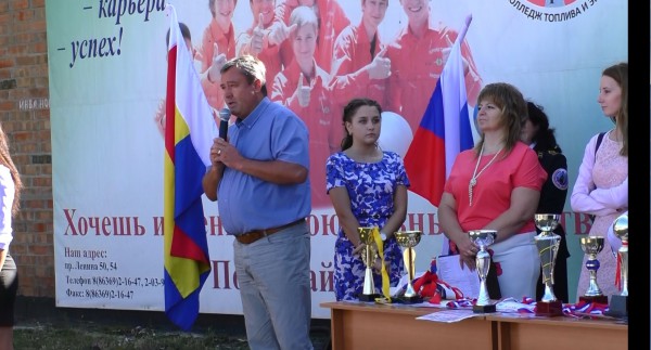 День знаний – это праздник книг, цветов, друзей, улыбок, света! День знаний – это первые звонки и волнения, море цветов и белых бантов, и, конечно, уроки мира. Традиционно 1 сентября в нашем колледже проводится торжественная линейка, посвящённая Дню Знаний. Все ребята, отдохнувшие и загорелые, снова собрались у дверей колледжа. Они радовались встрече с одногруппниками, руководителями групп и любимыми преподавателями. В филиале колледжа появилась новая традиция – вынос флага колледжа. Руководитель филиала Богатырева Г.И. поздравила студентов с началом нового учебного года и пожелала успехов в учёбе. В торжественной линейке принимали участие приглашенные гости: директор центра занятости г. Новошахтинска Тедеева В.А., специалист по работе с молодёжью управления образования г. Новошахтинска Молянова О.С., заместитель начальника отдела физкультуры и спорта г. Новошахтинска Миллер И.С., главный инженер ОАО «ДонЭнерго» Траров В.В., которые пожелали обучающимся новых побед в учебе, спорте.