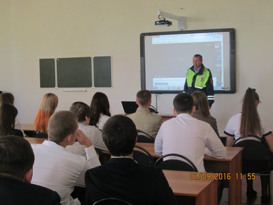 1 сентября прошел единый классный час «Наша безопасность в наших руках», на котором присутствовал сотрудник ГИБДД – Сидоренко В.С. Обучающимся были показаны презентации, видеоролики и проведены профилактические беседы о правилах поведения на дороге и в общественных местах, проведены инструктажи по ТБ.