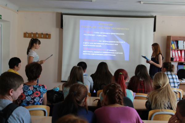 08 сентября в группах 3-го курса специальностей «Компьютерные системы и комплексы» и «Операционная деятельность в логистике» библиотекарем Кочерга М.П., руководителями групп Черкасской Е.И. и Передерий Е.П. проведен классный час на тему «Трагедия Беслана».