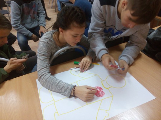 Все блоки тренингового занятия отличались своим разнообразием, создавая при этом положительную атмосферу между участниками группы. Ребята придумали название, девиз, эмблему команды; выполняли упражнения по формированию и развитию толерантности.