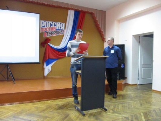 10 ноября 2016 года студенты 4 курса филиала колледжа Кочет Василий и Архипов Владимир под руководством преподавателя Измалкова Максима Сергеевича участвовали в территориальном круглом столе на тему «Профилактика информационного терроризма в молодежной среде».