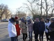 Первая остановка по исторически значимым местам Новошахтинска в годы войны состоялась возле памятника, в районе бывшего новошахтинского аэродрома. Елена Владимировна рассказала присутствующим о том, что еще в 30-х годах все студенты педагогического училища города Шахты в обязательном порядке проходили обучение на этом месте. Девушки и юноши прыгали с парашютами, учились управлять летательным аппаратом, который на то время состоял только из пластика. Однако во время оккупации нашего города, на это место немцы вывозили новошахтинцев на расстрел.