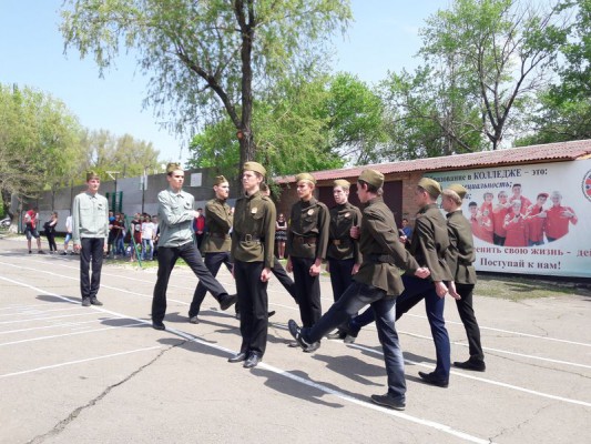 смотр строя и песни «Марш победителям!». Участники конкурса продемонстрировали строевую подготовку, точность, правильность выполнения строевых команд командира, точность и правильность маршировки в колонне, чёткость и правильность сдачи рапорта, выразительное исполнение песни и дикционная чёткость речёвки. И, конечно же, не последним критерием оценивания была форма одежды.
