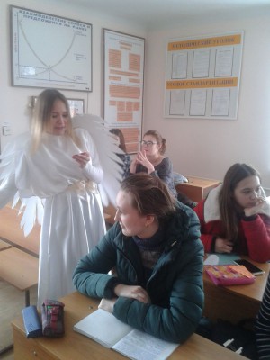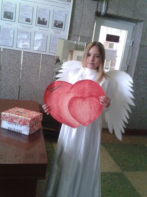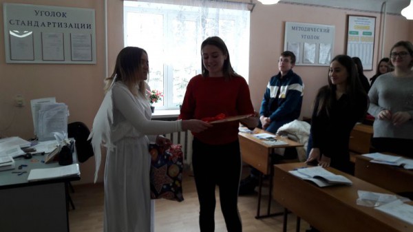 В целях воспитания духовно-нравственных качеств личности, взаимоуважения девушек и юношей, этических норм поведения, активизации культурно - досуговой деятельности обучающихся 14.02.2018 г. в филиале колледжа работала «Почта Валентина». В фойе корпусов филиала обучающихся и педагогов встречали ангелочки ( обучающиеся гр. К-41 Абдулина И. и Самарская Е.), которые предлагали написать свои признания в любви на большом красном сердце или же передать свою валентинку через почту Валентина своей возлюбленной или возлюбленному.