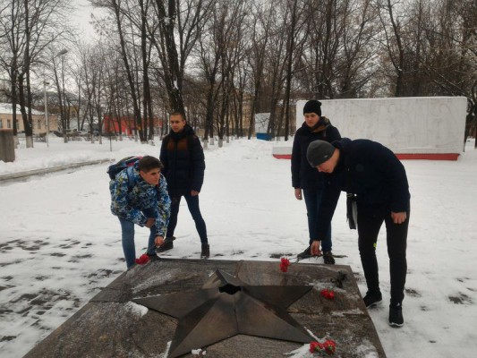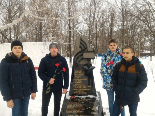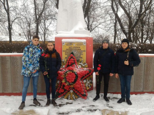 Несмотря на снежную и прохладную погоду, 15 февраля обучающиеся и руководители групп Т-33 Беркова С.В., гр. Л-22 Рязанская О.Б., гр.Эт-54 Савченко Н.О., гр. Эн-32 Шабунина М.А., гр. К-43 Иорданиди Н.Д. организовали и провели акцию "Никто не забыт, ничто не забыто..." - почтили память защитников г. Новошахтинска и всех кто не вернулся домой минутой молчания и возложили цветы к братской могиле у памятника на аллее Боевой славы в городском парке культуры и отдыха, памятнику героям-шахтёрам, памятнику воинам освободителям.