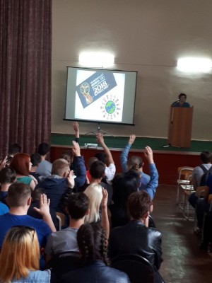 10 мая в актовом зале НФ ГБПОУ РО «ШРКТиЭ им. ак. Степанова П.И.» прошёл единый классный час для 1-3 курсов, посвященный интерактивной программе профилактики дискриминирующего поведения обучающихся «Футбол без дискриминации», приуроченная к мероприятиям чемпионата мира по футболу FIFA 2018.