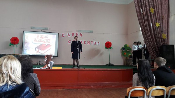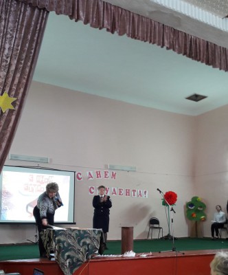 В пятницу, 25 января в стенах НФ ГБПОУ РО «ШРКТЭ» отметили, давно ставший традиционным, «День Татьяны» ( «День студента»). Обучающиеся групп Л-22, К-43, Эн-32, Ин-42, Эк-12, Л-21 а и преподаватель Васянович Н.А. подготовили веселую и интересную поздравительную программу, в которой было место и сценке о студенческой жизни и шуточному видеоролику о жизни студентов 1 и 4 го курса и, конечно же, музыкальным номерам. В честь праздника, поддержали и осуществили личную традицию колледжа «рубить хвосты». А в завершении праздника самые активные студенты были объявлены и награждены почетными грамотами и медалями за успехи в спорте, многочисленных конкурсах по различным дисциплинам, за свой важный вклад в проведение мероприятий и участие в жизни колледжа. Руководитель НФ ГБПОУ РО «ШРКТЭ» Герасименко Н.А. от всей души поздравила всех студентов и пожелала дальнейших побед и успехов в учебной деятельности!