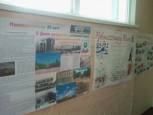 В заключительной части классного часа, студенты посетили выставку, размещенную в библиотеке колледжа и посвященную 80-летию г. Новошахтинска. Выставку организовали и подготовили студенты НФ ГБПОУ РО «ШРКТЭ» совместно с преподавателями. Были представлены фото городских достопримечательностей и красот родного края. Так же в холле малого корпуса НФ ГБПОУ РО «ШРКТЭ» были размещены стенгазеты, на тему «Новошахтинску 80 лет», а так же прошла трансляция мультимедийного видеоролика, подготовленного группой Ин-42, в котором преподаватели колледжа поделились своим опытом работы на угольно – промышленных предприятиях нашего города.