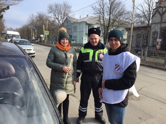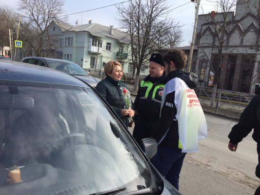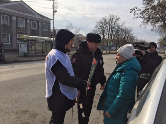 В ходе акции автоинспекторы останавливали автомобили, за рулем которых находились женщины, а дружинники и волонтеры дарили женщинам-водителям весенние цветы и праздничное настроение, при этом напоминали об основных правилах безопасности на дороге.
