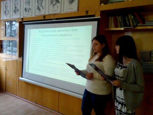 Студентам пояснили, что такое экстремизм и причины его возникновения, какие виды он имеет и какой ущерб несет.