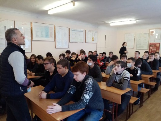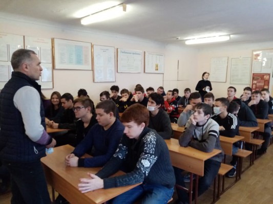 02.02.2021 г. социальным педагогом Панченко Е.П. совместно с врачом-наркологом Новошахтинского наркологического кабинета Ерошенко Ю.Г. была организована и проведена профилактическая беседа в группах ТЭО-11, ТЭА-11, и КСК-11. Врач рассказал обучающимся о вреде употребления спиртосодержащих и наркотических веществ, особо отметил их вредоносное влияние на молодой организм и рассказал о последствиях, приносящих вред здоровью.