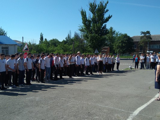 В 8-30 участники сборов были построены во дворе техникума по адресу ул. Школьная 7.