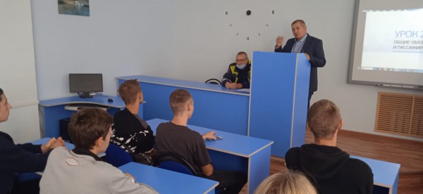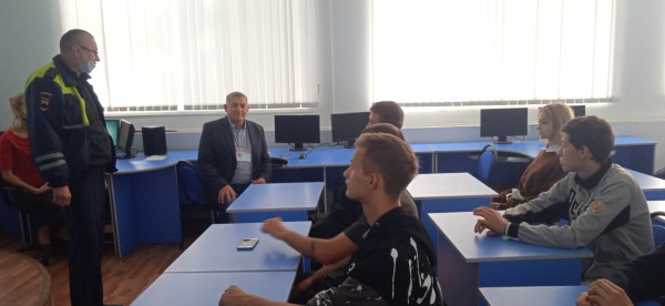 - 22 сентябр педагог-организатор ОБЖ Ильяшенко Н.Н. организовал встречу для студентов 1 курса с представителем ГИБДД Сидоренко В.С. на тему «ПДД - закон для всех»