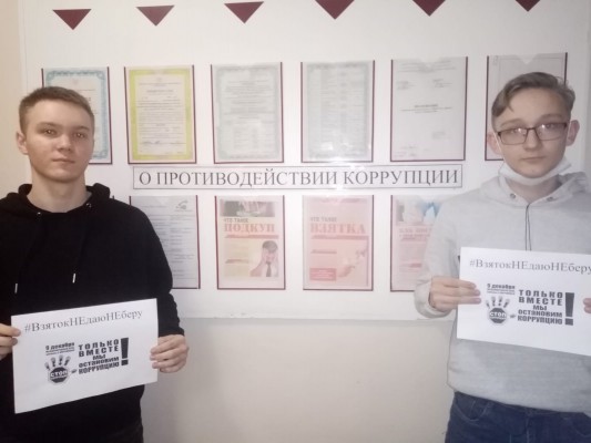 9 декабря 2021 года преподаватель Шатликова Н.М. организовала круглый стол на тему «Коррупция и методы борьбы с ней», а преподаватель Локтионова В.В. - тематический час «История борьбы с коррупцией».