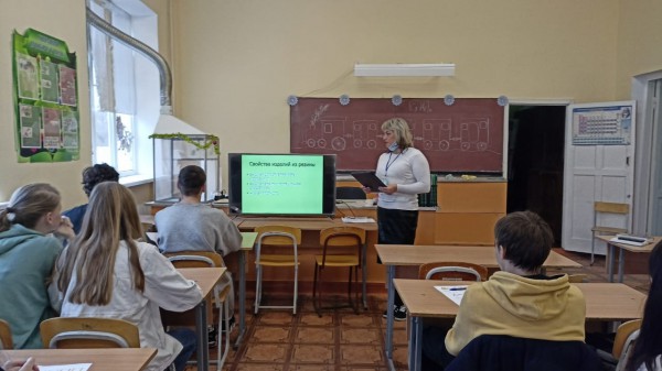 В ходе бинарного открытого урока студенты ознакомились с образцами полимеров, капрона, капрена, капролоктана, полиэтилена, полипропилена, образцами изделий из каучука и резины, а при контроле знаний высказывали суждения, выбирали готовые или конструктивные ответы.