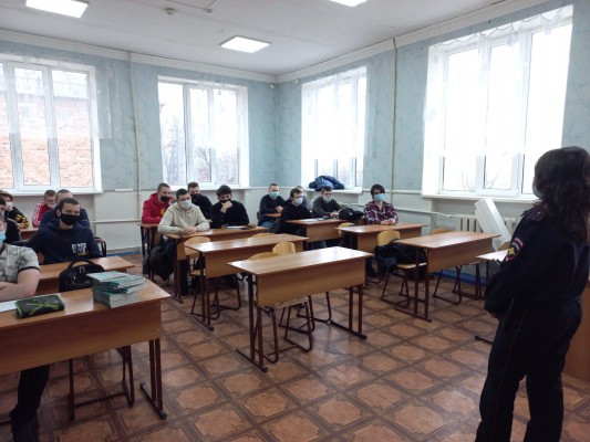 В рамках ежегодной Всероссийской акции «Студенческий десант» инспектор ПДН Тарасенко Д.С. 18 января 2021 года провела разъяснительные беседы «Деятельность добровольческой народной дружины по охране общественного порядка на территории г.Новошахтинска», «Порядок поступления на службу в ОВД РФ» со студентами второго курса в целях формирования позитивного общественного мнения о деятельности полиции и предоставления уникальной возможности для молодежи на практике познакомиться с работой сотрудников полиции.