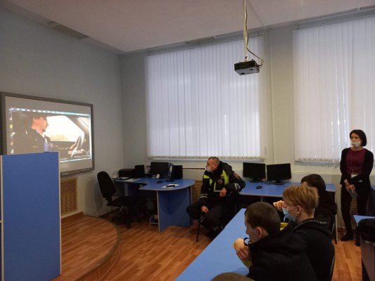 Одним из первых мероприятий стала встреча с инспектором ГИБДД Сидоренко В.С.«Безопасная зимняя дорога»
