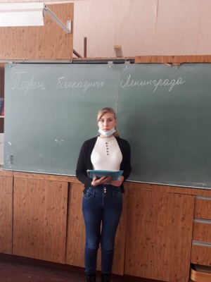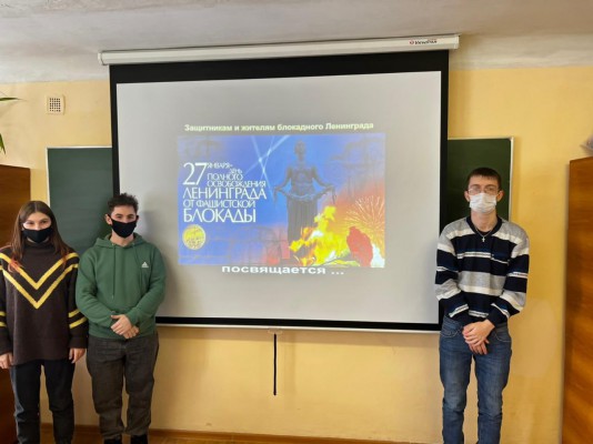 27 января провдены тематические классные часы: «Муза блокады», «Городу-герою посвящается…», «Непокоренные». Волонтёры раздавали информационные буклеты о самых страшных моментах блокады "По страницам блокадного Ленинграда".
