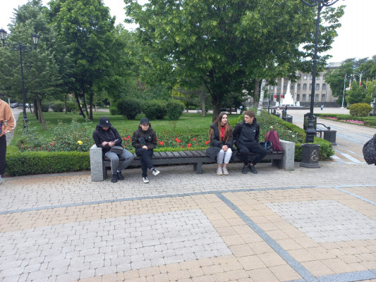 Следующей остановкой был Екатерининский сквер, в котором ребята прикоснулись к истории создания Екатеринодара.