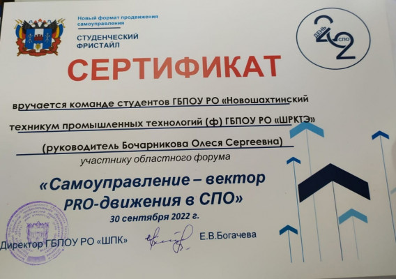 30 сентября 2022г. обучающиеся техникума приняли участие в областном студенческом форуме-фристайле «Самоуправление – вектор PRO-движения в СПО».