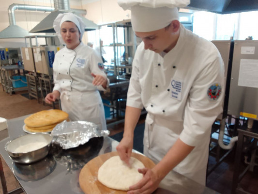 ✅️Мастер-класс по выпечке осетинских пирогов в учебном кулинарном цехе, оснащенным современным оборудованием, показал студент гр.ПО-31, профессии 43.01.09 Повар, кондитер Кузьменко А. и преподаватель спец.дисвиплин, главный эксперт демонстрационный экзамена Никитченко О.С.