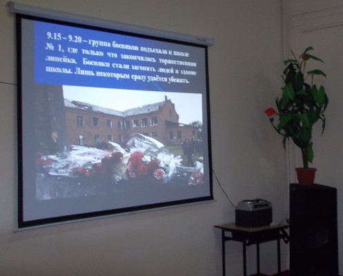 …Терроризм – одно из самых опасных и сложных явлений современности, приобретающее все более угрожающие масштабы. Его проявления обычно влекут массовые человеческие жертвы и разрушение материальных и духовных ценностей, не поддающихся порой воссозданию. 1 сентября 2014 г. исполнилось 10 лет страшной трагедии, которая потрясла весь мир. В результате террористического акта в городе Беслан погиб 331 человек, из которых 186 – дети. ….- с таких слов началась 3 сентября линейка памяти посвящённая 10-ой годовщине со дня трагических событий в г. Беслан.