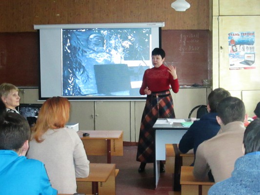 Студенты с интересом слушали информацию об истории возникновения города, этапах его развития, особенно о военных годах Новошахтинска и судьбах его жителей, принимали активное участие в обсуждениях, читали стихи, посвященные родному городу. На протяжении всего классного часа шло презентационное сопровождение.