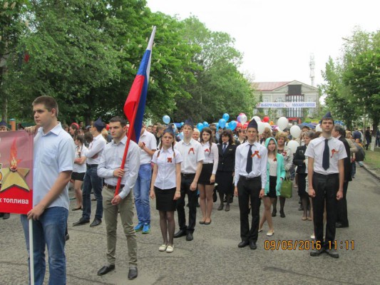 9 мая сотрудники и студенты НФ ШРКТЭ приняли участие в праздничном шествии и митинге, посвященных 71-ой годовщине Победы в Великой Отечественной войне. Обучающиеся НФ ШРКТЭ сформировали триколор и прошествовали с ним по центральной улице города.